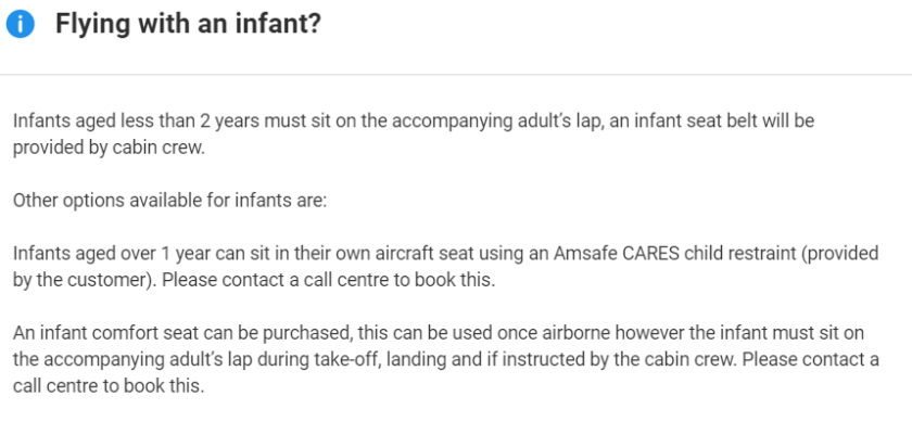 Fakt? To se mi nezdá. Předpis aerolince nařizuje, že infant musí sedět vedle dospělé osoby. Mj. kvůli tomuto, nemáte nikdy zaručené místo, i když si ho koupíte. Protože aerolinky mohou cestující přesadit, aby dítě sedělo vedle rodiče/svého doprovodu. Aspoň takovýto výklad jsem četl posledně od experta.