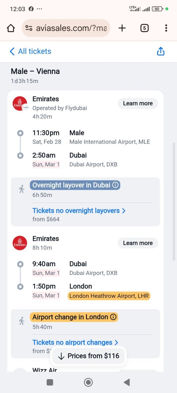 Levné letenky - https://aviasales.tp.st/q5LrfdMd Výborný vyhledávač je Aviasales. Funguje více jako agregátor vyhledávačů, takže vám vyhledá lety na různých internetových stránkách. Jejich vyhledávač tak využijete hlavně na vyhledání levných letenek po Evropě nebo po Asii, kde výborně umí vyhledávat navazující lety různých nízkonákladových společností.