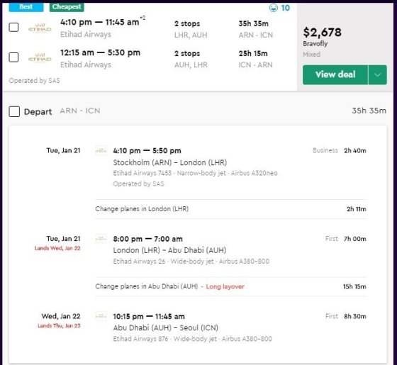 OK, tak som kupil za 2,5k ten F s Etihad do Soulu ( 4x v A380 cez LHR a AUH )...snad do jari neskrachuju :)