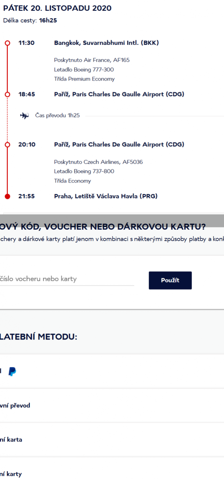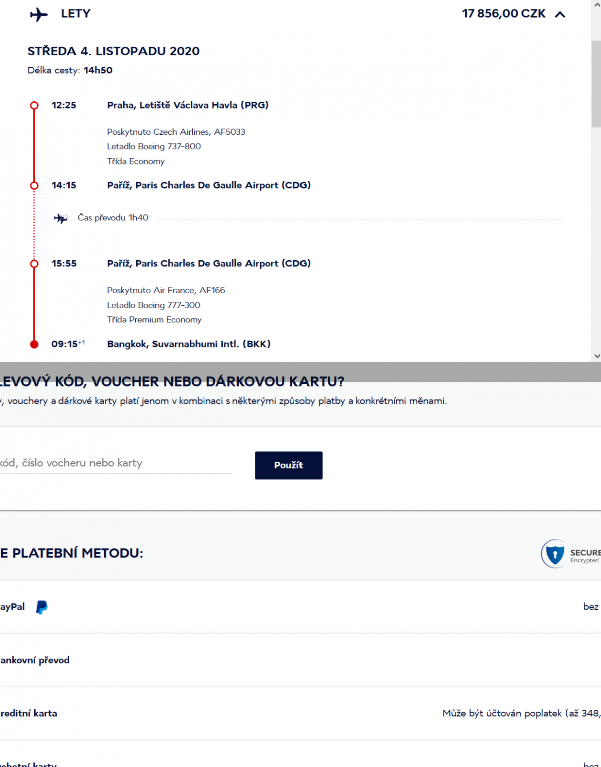 Nevýhody: Air France, CDG, nemožnost zrušení, corona
