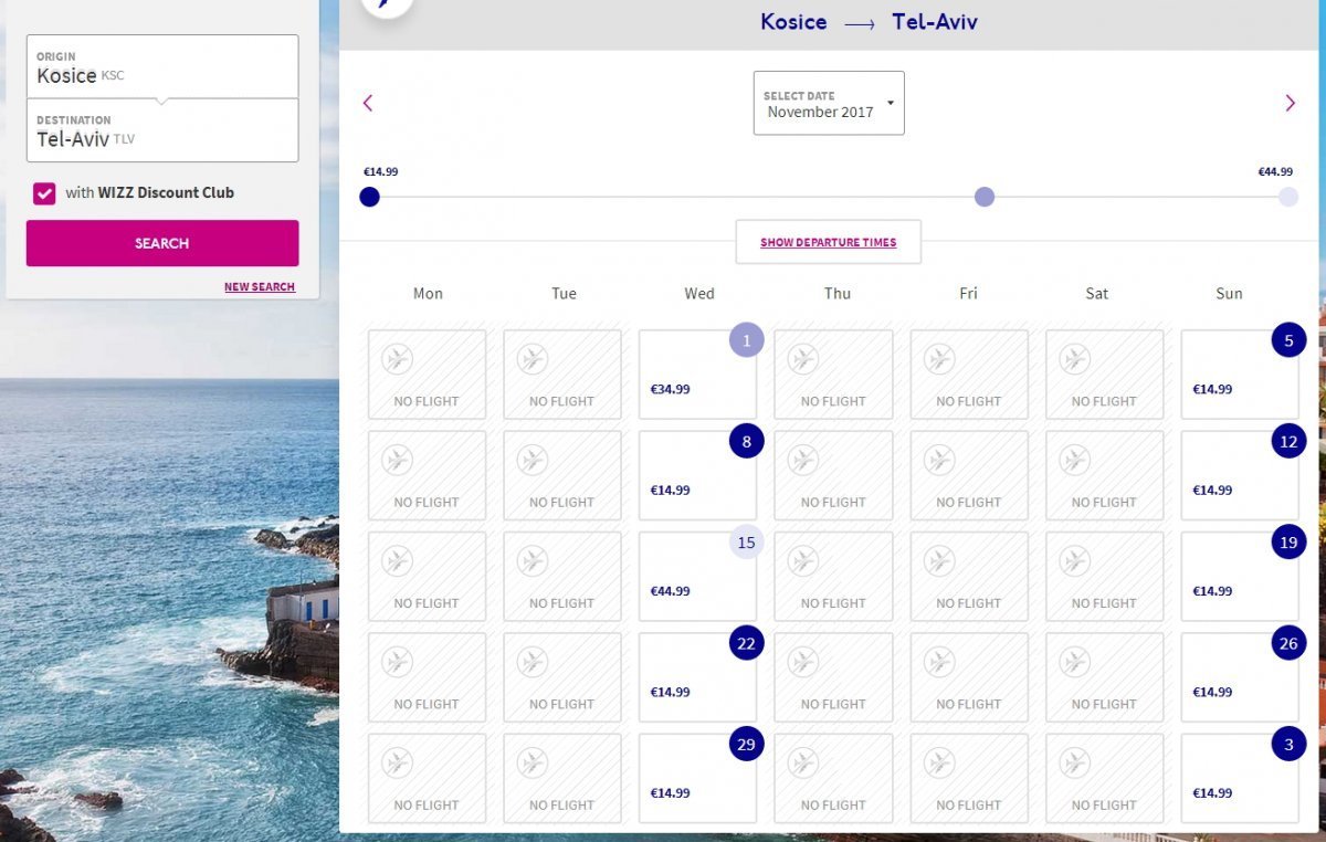 (WIZZ) Kosice - Tel Aviv 29,98 €