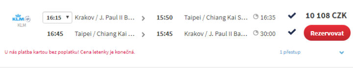 - [KL] Krakov - Tchaj-pej 10.108 Kč