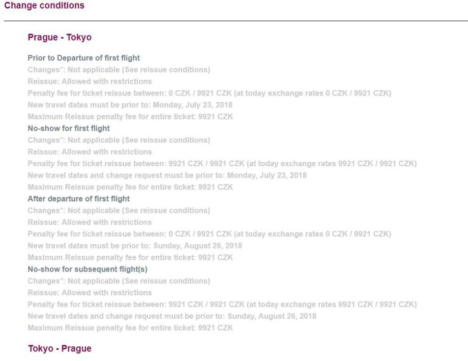 září 2017 jsme nemohli absolvovat let s Qatarem do Japonska. Měli jsme dvě letenky PRG-DOH-NRT a zpět zakoupené přímo na QatarAirways.com, třída Economy (O). Letenky nepropadly a my máme necelý rok na změnu letu. Viz podmínky k letence v příloze. Poplatek za změnu může být až 9921 Kč za jednu letenku. Nicméně jak toto provést? Zastoupení v Praze nemají, v emailu mě odkázali ať si tam zavolám.. Našel jsem nějaké pražské číslo, ale to nikdo nebere a do Doha se obávám volat dle diskuzí tu na foru. A tak se ptám, zda jste někdo s QA neřešil něco podobného a pokud ano, jak a s kým?