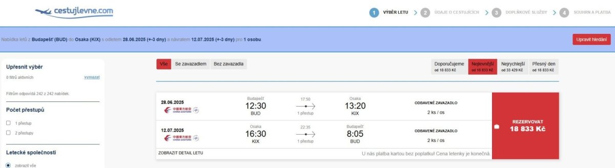 Jestli můžeš fakt odlétnout poslední víkend v červnu, tak máš "spoustu" možností včetně multicity za cca 18000. Července už to fakt zabije a hodně prodraží. A je otázka jestli cena klesne, protože v Osace je Expo 2025.