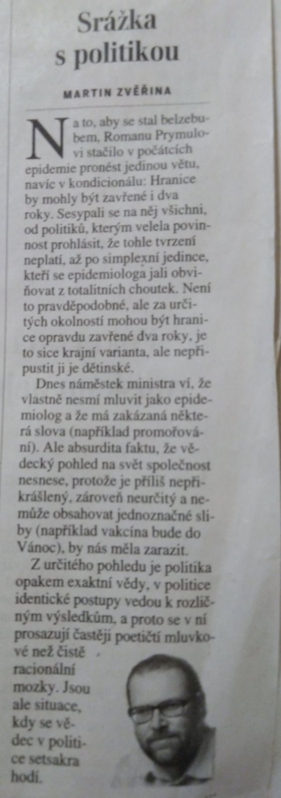 A dala by se použít věta z toho sloupku. "Vědecký pohled na svět společnost nesnese".