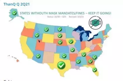 Státy USA (16 z 50), kde již není covidové šílenství a mohou zde být bez „náhubků.“ Stav ke 2.3.2Q21