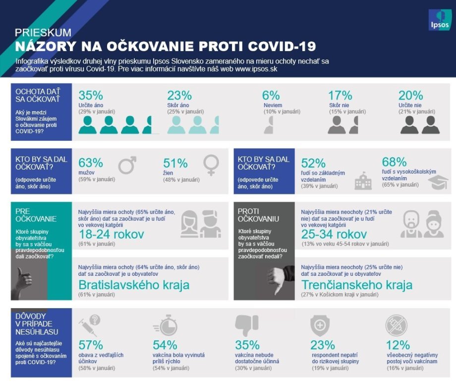 "V máji by sme mohli minúť „zásobník“ všetkých, ktorí sa chcú očkovať. Už onedlho sa nám však minie to najdôležitejšie – zástupy ľudí ochotných vyhrnúť si rukávy a nechať sa očkovať. Podľa posledného prieskumu spoločnosti Ipsos sa iba 35 % ľudí chcelo nechať aktívne zaočkovať. To viac-menej sedí aj s aktuálnymi výsledkami očkovania. Máme zaočkovaných len asi 6 % deväťdesiatnikov, 30 % osemdesiatnikov a 33 % sedemdesiatnikov."