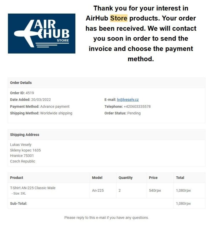 Nabizim k prodeji 2 tricka ANTONOV AN-225 Mrija z AirHubStore, ktera jsou mne bohuzel mala. Jsou nova, ted prisla. Cekal jsem na doruceni 6 tydnu. Velikost je uvedena 4XL, ale dle meritek obvyklych v CR je to spis 2XL. Sirka pres prsa 60cm. Zaslani pres Zasilkovnu na me naklady. Cena za jeden kus vcetne dopravy, celniho odbaveni a DPH byla 875Kc. Nez je posilat zpatky do Kyjeva, tak bych je zkusil udat v CR. E-mail: lv@lvesely.cz https://airhubstore.com/apparel/...n-225-male .
