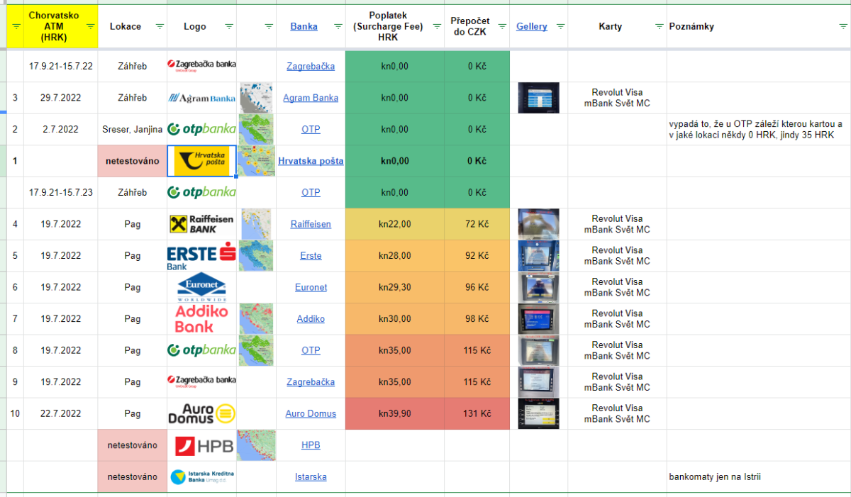 Nicméně má letoční zkušenost z Chorvatska je stejná, všude chtěli minimálně 22kun (72,-Kč) až 40kn (131Kč) prostě zřejmě objevili Surcharge Fee a všichni si ho zapli... Údajně na Chorvbatské poště ještě nic nechtějí a zřejmě jsou i oblasti, kde ten samý bankomat od stejné společnosti nic nechce a jinde zase ano a aby toho nebylo málo, tak je rozdíly ve Visa a MC a místě vydání karty..