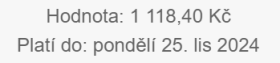 Prodám voucher na Flixbus v hodnotě 1 118 Kč za 900 Kč, platnost do 25.11.2024 .