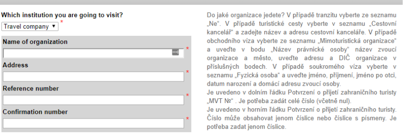 Mám otázku k vyplnění dotazníku (https://visa.kdmid.ru/PetitionChoice.aspx). Co konkrétně mám vyplnit zde (vizte obrázek), když cestuji samostatně (klasicky turistické vízum) – ne přes cestovku? Díky moc