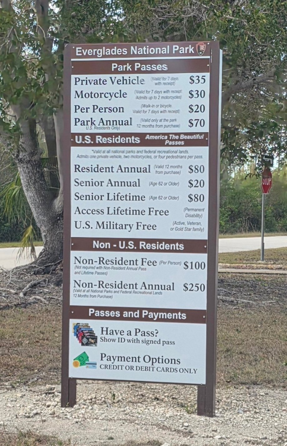 Ano i za těch 80 USD jsem si Everglades hodně dlouho rozmýšlel. Za 235 (2 osoby v autě) nebo 250 je to úplný nesmysl a nedal bych to v žádném případě. Tahle ten pas za 80 USD platí i třeba do Canaveral National Seashore, kde se jinak platí 25 za auto nebo do Castillo de San Marcos kde se jinak platí 15 za hlavu, takže když pojedu i tam, tak jsem vlastně na ceně těch původních 35 jen čistě za Everglades. Případně kdo se plácne přes kapsu za letadlo nebo loď na Dry Tortugas tak mu to platí i tam na vstup.