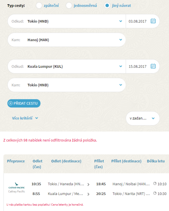 Vyhladavac leteniek pri zadani HND hlada aj HND aj NRT.