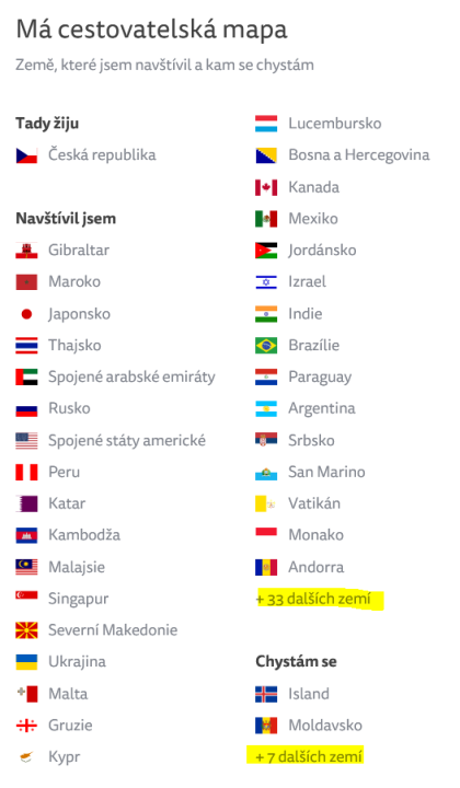 Navrhuji, aby v cestovatelské mapě - po kliknutí nebo najetí na text "xx dalších zemí" se zobrazila jejich jména.