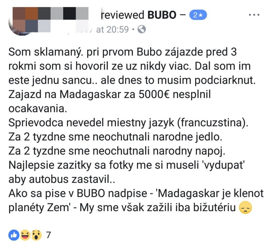 Tak jasne ze ked ides niekde kde si odkazany v podstate na cloveka z cestovky a vychytas nejakého zlého typa ako sprievodcu, je to pruser (my sme boli na jednej prednaske o Madagaskare kde sa z "publika" ozival stale jeden typek a vsetko komentoval, takym tym mudrlanstkym spôsobom ktory ja osobne velmi nemam rad a neskor z neho vypadlo ze robi sprievdcu pre victory travel. Takého dostat, tak si asi rovno kupujem letenku spat)... alebo ked chytis 1/3 grupy nejakých blaznov co vkuse vymyslaju, somru a nadavaju ze je teplo v afrike Ale ten "hate" je taky zaujimavy, sak cestovka ta nenuti co jest a pit :) Na Madagaskare sa najviac asi pije rum (ak sa bavime o alku) a rozne jeho podoby a to je vsade + tie najznamejsie jedla boli tiez v kazdej restike + europska strava. A ze autobus nezastavi vzdy ked chce niekto nieco fotit je tiez relativne ok ak sa tam veze 40 roznych fotkychtivych ludi Ale teda chapem ze ked za to das za osobu 5000e, tak ocakavas asi spickovu organizaciu a priebeh... Len pre zaujimavost, minuly rok 16 dni na mada nas vyslo nejakých 2800e pre dve osoby (EDIT: aby som teda uviedol presnu informaciu, platili sme len jednu letenku, takze realne by to bolo o 500-800e asi viac ta suma) v takom strednom rezime, ze ani luxus ale ani lowcost. Ta pridana hodnota cestovky jednoducho nemoze byt tak velka aby to dorovnalo ten rozdiel