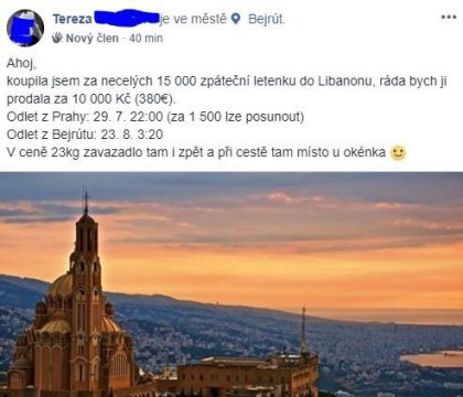 tonic před 7 lety (18. 06. 2018 10:20) Online před 6 hod Přidal se před 11 lety Napsal 7806 příspěvků Poslat zprávu Zobrazit příspěvek Něco pro tonica z jeho oblíbené skupiny. Slečna koupila letenku do Bejrútu za 15k a snaží se jí prodat za 10k.