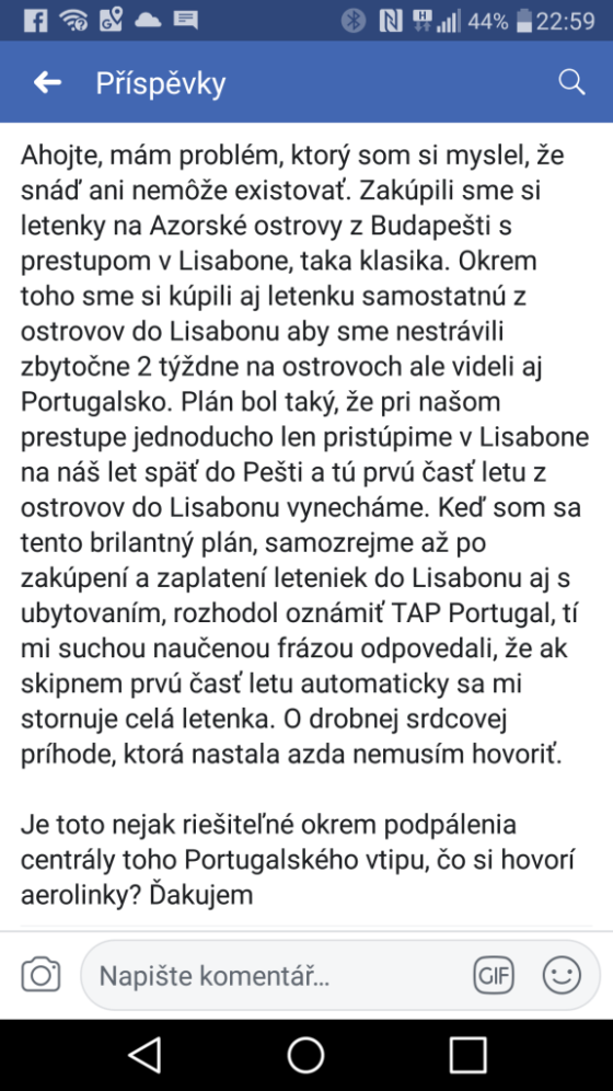 Zdravim vospolok. Dnes som uporne v praci rozmyslal, ci mam zalozit tuto temu. Predsa, nikto uceny z neba nespadol (alebo ziadna otazka nie je hlupa), ale to co v "cestovatelskych" skupinach na FB sa clovek docita...rozum zostava stat. Uz je nam tak dobre, ze aj Vysoka skola zivota (prip. studied at Harvard, alebo manager at Durex) moze cestovat dalej ako na pivo, takze som sa rozhodol, ze tu sem tam prispejem nejakym peknym screenshotom. Dufam, ze nikoho neurazim tuto z pritomnych a prilis si nepokazim moj biedny image :D Samozrejme vsetky mena cenzurovane. Zaciname klasickou otazkou ohladom batoziny v Ryanair...ktora sa necakane zvrtla (aj bez koleciek) :D .
