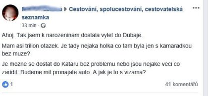 Zdravim vospolok. Dnes som uporne v praci rozmyslal, ci mam zalozit tuto temu. Predsa, nikto uceny z neba nespadol (alebo ziadna otazka nie je hlupa), ale to co v "cestovatelskych" skupinach na FB sa clovek docita...rozum zostava stat. Uz je nam tak dobre, ze aj Vysoka skola zivota (prip. studied at Harvard, alebo manager at Durex) moze cestovat dalej ako na pivo, takze som sa rozhodol, ze tu sem tam prispejem nejakym peknym screenshotom. Dufam, ze nikoho neurazim tuto z pritomnych a prilis si nepokazim moj biedny image :D Samozrejme vsetky mena cenzurovane. Zaciname klasickou otazkou ohladom batoziny v Ryanair...ktora sa necakane zvrtla (aj bez koleciek) :D .