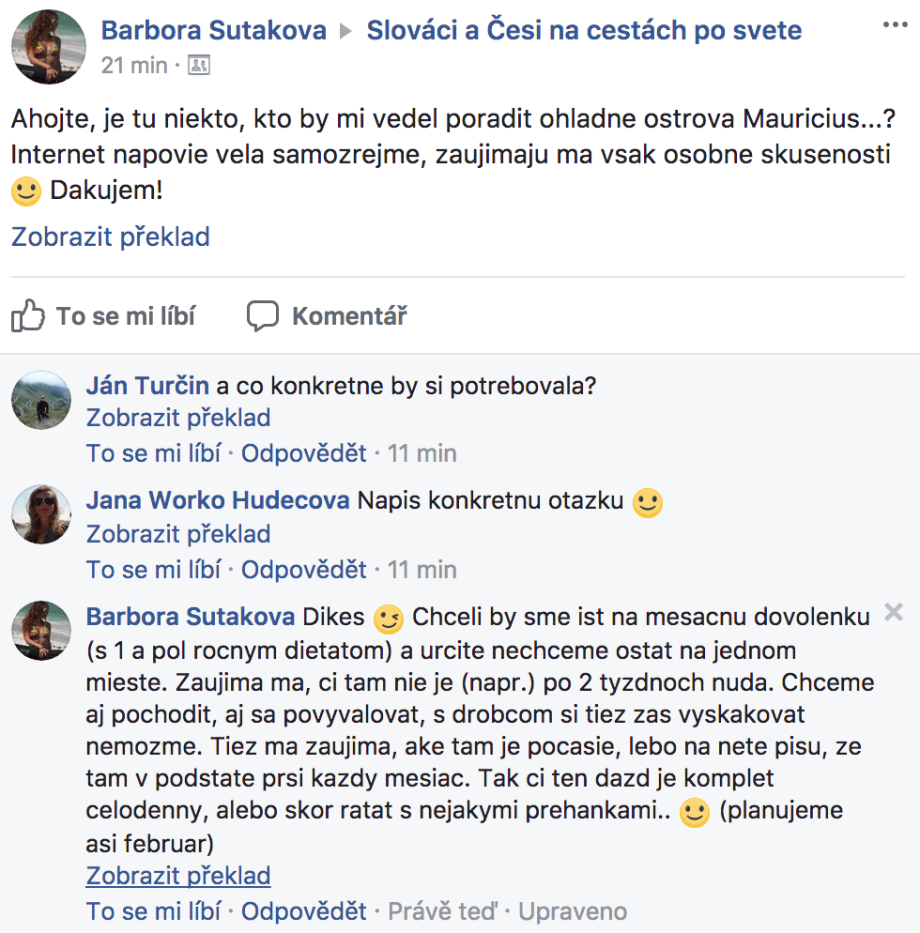 Zdravim vospolok. Dnes som uporne v praci rozmyslal, ci mam zalozit tuto temu. Predsa, nikto uceny z neba nespadol (alebo ziadna otazka nie je hlupa), ale to co v "cestovatelskych" skupinach na FB sa clovek docita...rozum zostava stat. Uz je nam tak dobre, ze aj Vysoka skola zivota (prip. studied at Harvard, alebo manager at Durex) moze cestovat dalej ako na pivo, takze som sa rozhodol, ze tu sem tam prispejem nejakym peknym screenshotom. Dufam, ze nikoho neurazim tuto z pritomnych a prilis si nepokazim moj biedny image :D Samozrejme vsetky mena cenzurovane. Zaciname klasickou otazkou ohladom batoziny v Ryanair...ktora sa necakane zvrtla (aj bez koleciek) :D .