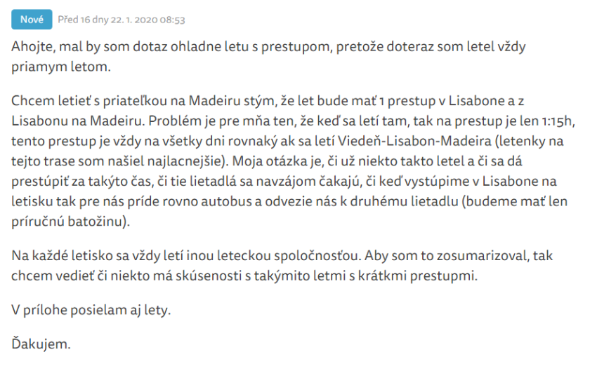 Zdravim vospolok. Dnes som uporne v praci rozmyslal, ci mam zalozit tuto temu. Predsa, nikto uceny z neba nespadol (alebo ziadna otazka nie je hlupa), ale to co v "cestovatelskych" skupinach na FB sa clovek docita...rozum zostava stat. Uz je nam tak dobre, ze aj Vysoka skola zivota (prip. studied at Harvard, alebo manager at Durex) moze cestovat dalej ako na pivo, takze som sa rozhodol, ze tu sem tam prispejem nejakym peknym screenshotom. Dufam, ze nikoho neurazim tuto z pritomnych a prilis si nepokazim moj biedny image :D Samozrejme vsetky mena cenzurovane. Zaciname klasickou otazkou ohladom batoziny v Ryanair...ktora sa necakane zvrtla (aj bez koleciek) :D .
