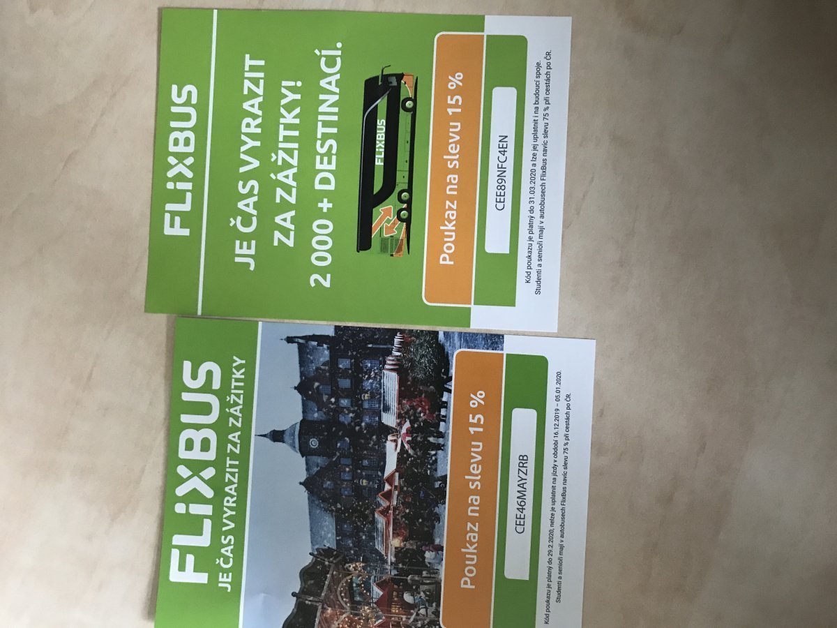 15% sleva na všechny autobusové linky jedoucí přes ČR :-D