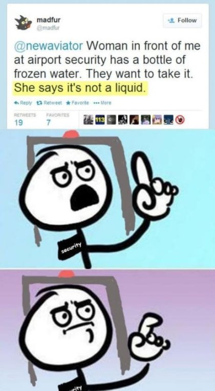 Buzerace zaručena na libovolném letišti v UK, kde ti tvůj sáček vyhodí a přendají do vlastního, do kterého se samozřejmě 1l nikdy nevejde, jak píše Andrea.