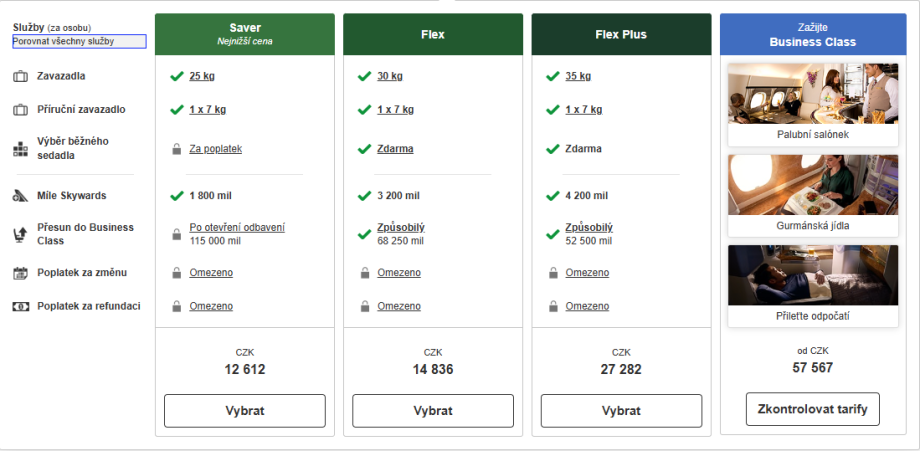 Jednotlivé třídy se dělí dále do různých tarifních skupin, které se liší například počtem zavazadel, možností změny letenky či počtem věrnostních mil připsaných za let.