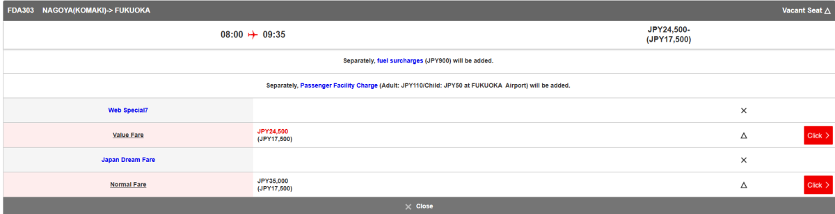 Pokud vám nebude fungovat karta, všechny lety s FDA můžete koupit také na webu Japan Airlines.