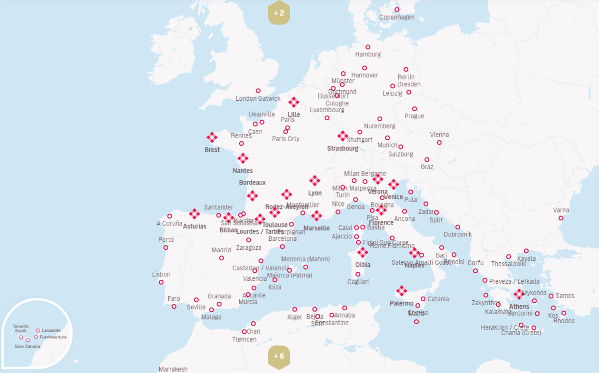 Volotea má báze na několika letištích zejména v jižní a západní Evropě.