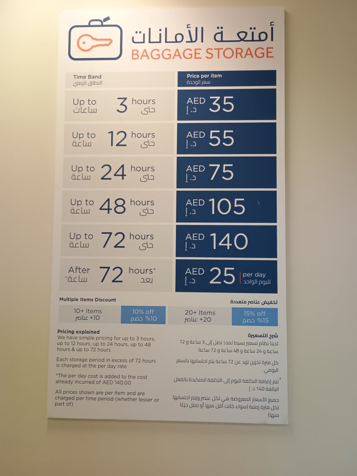 Úschovnu zavazadel najdete v příletové hale hlavního terminálu. Úschovnu i skříňky provozuje společnost Excess Baggage Company.