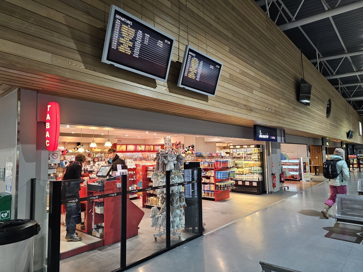 Ve veřejné části letiště využijete v odletové hale obchod se suvenýry a po bezpečnostní kontrole malý duty free shop nebo prodejnu francouzských sýrů.