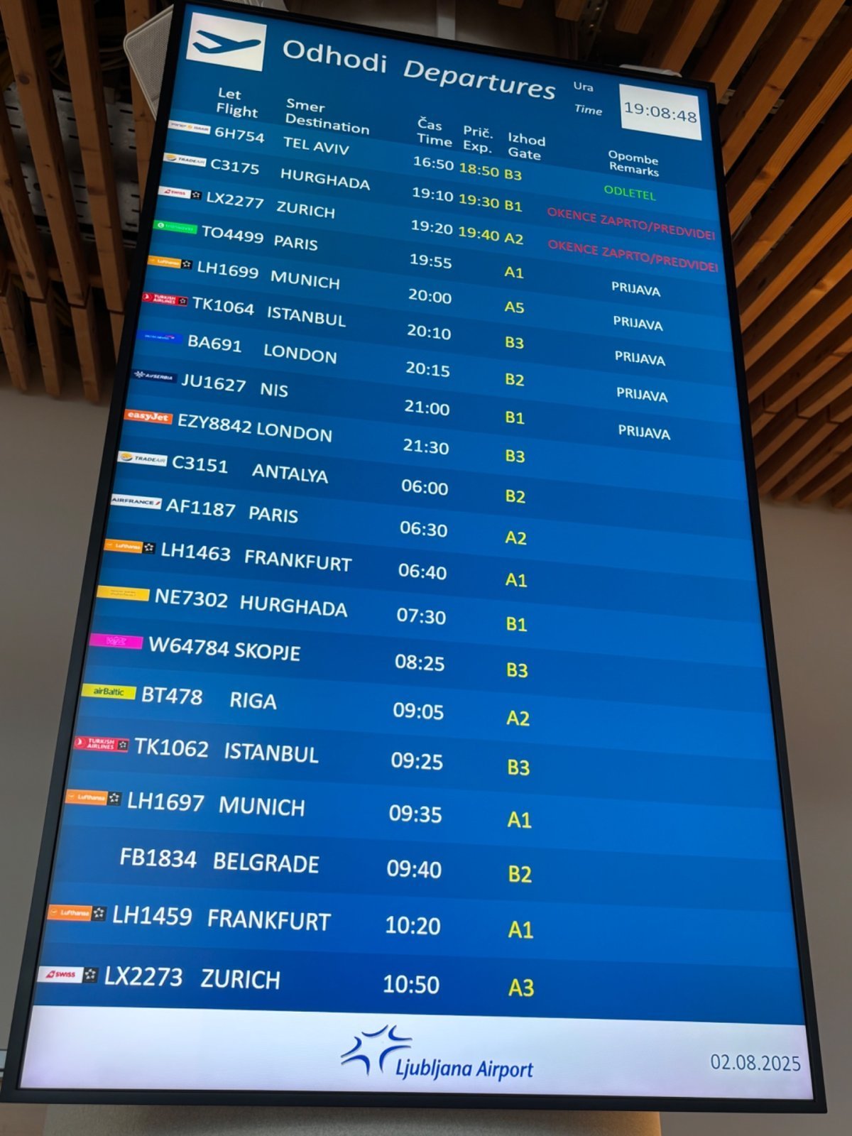 Hledáte přílety nebo odlety na/z letiště Ljubljana online v reálném čase, abyste si ověřili zpoždění nebo čas nástupu? Nejpřesnější informace nabídnou vždy oficiální stránky letiště:
