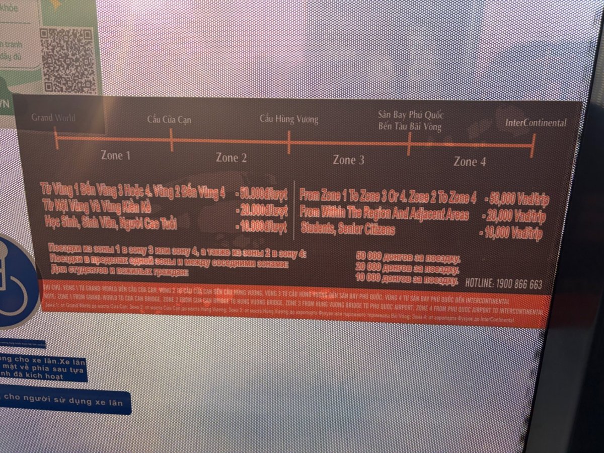 Ceník jízdenek se počítá podle zón a jedna jízda stojí mezi 10 000 VND a 40 000 VND.