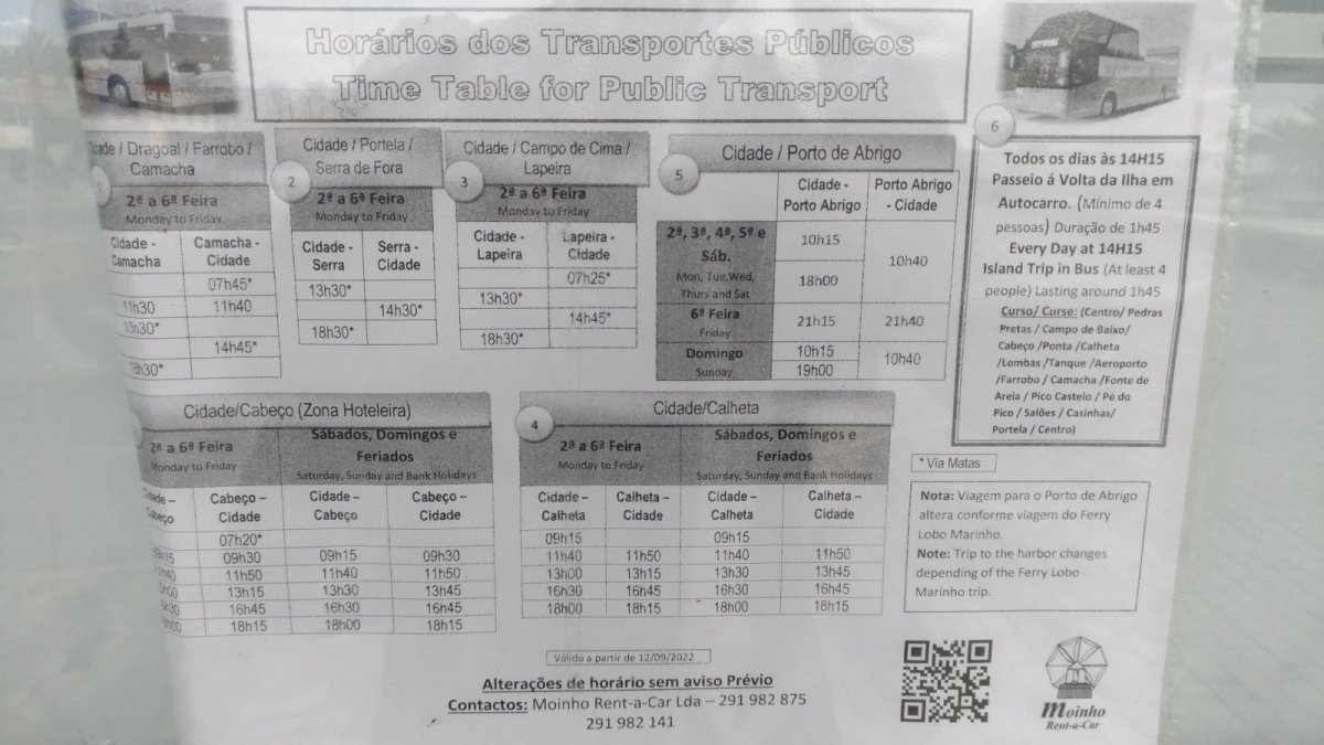Letiště je malé a dostačující a hlavně docházkové. Z něj do centra Vila Baleira s menším zavazadlem klidně pěšky asi 20-30 minut (v obydlené zóně jsou chodníky všudepřítomné). S větším zavazadlem taxi prý stojí 4,50€. Jinak místní autobusová společnost Moinho jezdí do pár míst po ostrově. http://moinhorentacar.com/transportes/