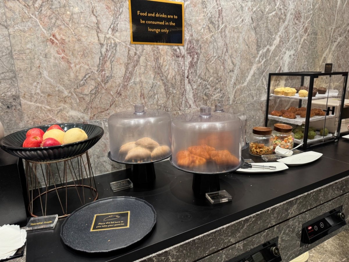 Changi Lounge v OC Jewel. Maji nekolik urovni vstupu, na LK dostanete uroven Premium zahrnujici 1 teple jidlo, 1 male pivo a 1 sprchu. Neomezena nabidka jen nealko v plechovce, kava (dobra), caj, pomerancovy dzus, ovoce (banan, jablko, nashi), par sladkych veci typu croissant, muffin apod., bily a ovocny jogurt a nejake lupinky do mlika. Viz prilozene obrazky.