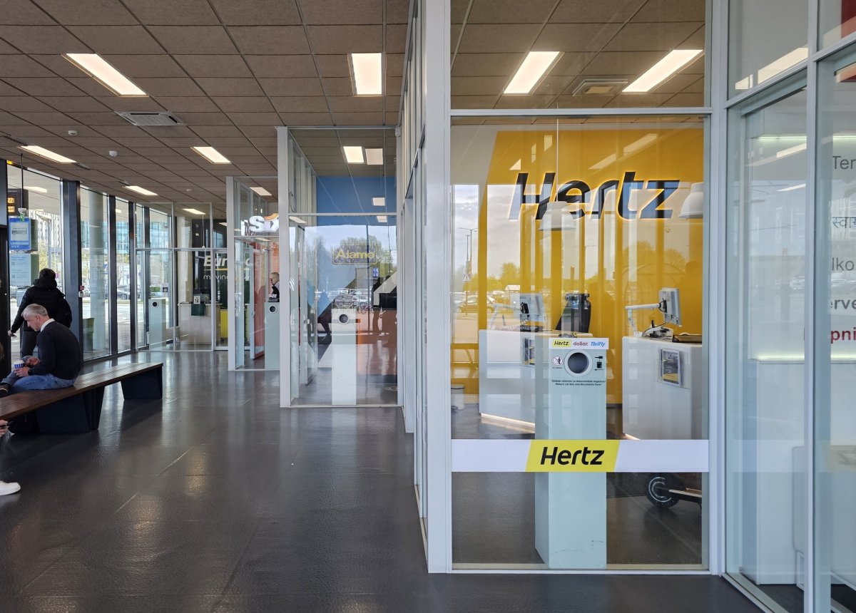 Přepážky autopůjčoven se nacházejí hned u zastávky autobusů a tramvají cca 2 minuty pěšky od terminálu skrz krytý koridor.