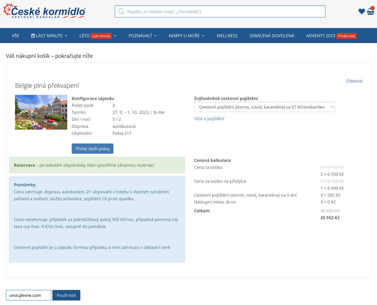 Do tohoto pole vložte váš slevový kupón nebo promo kód a získejte slevu na dovolenou.