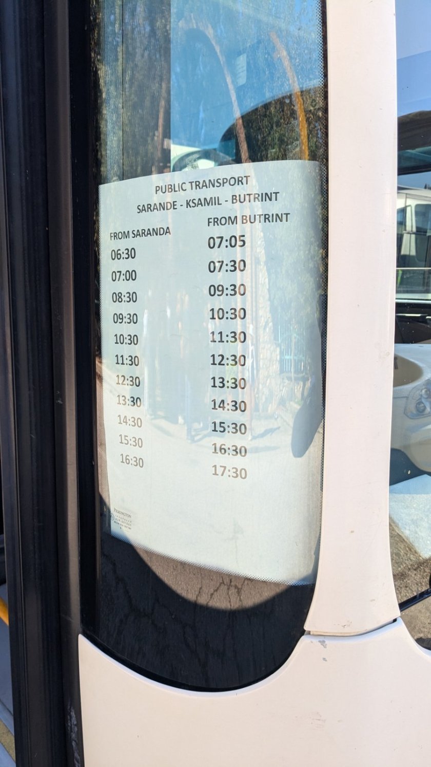 MHD Saranda-Butrint 200 LEK, Butrint-Ksamil 100 LEK, Ksamil-Saranda 150 LEK. Berou i eura v 1 EUR = 100 LEK. Vstup do Butrintu + MHD platba pouze cash. Jinak i mimo sezónu v Butrintu spoustu zájezdových busů.
