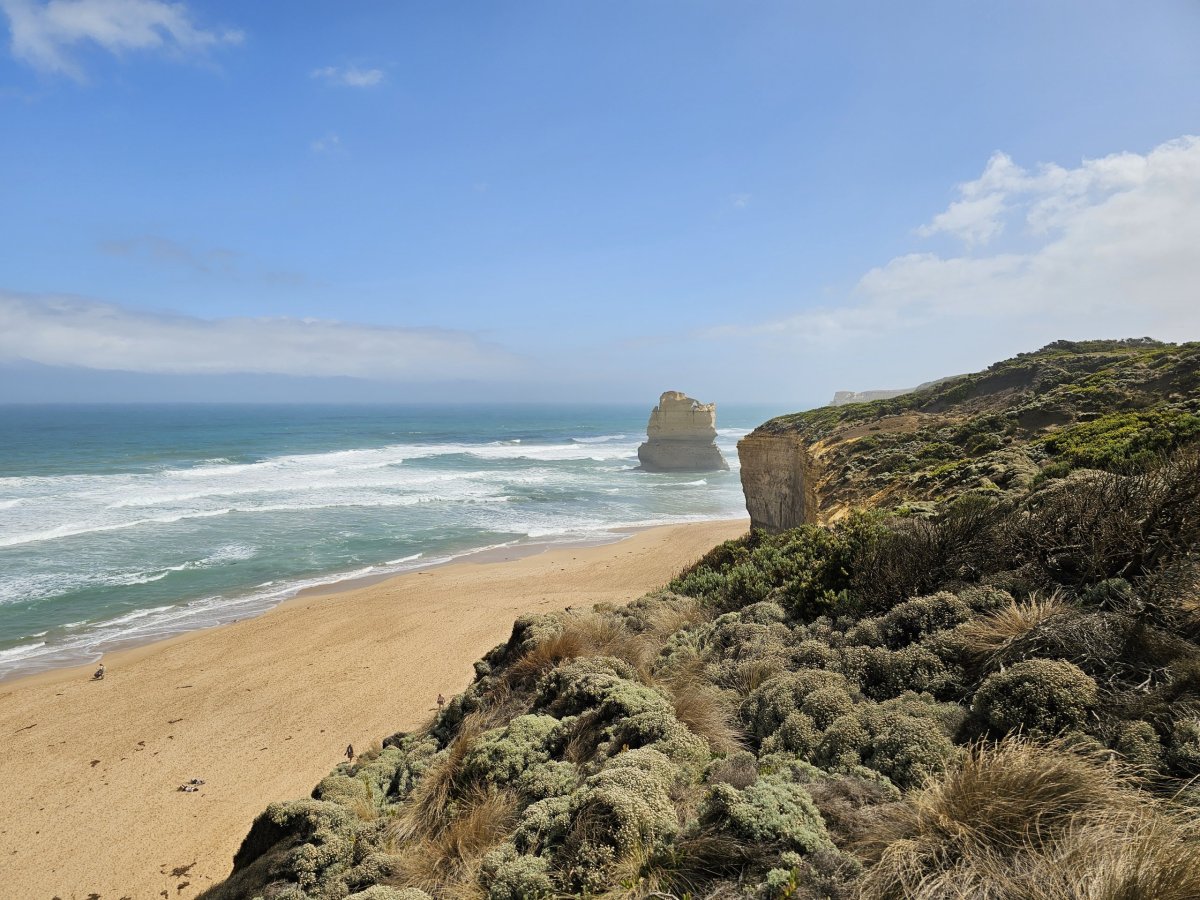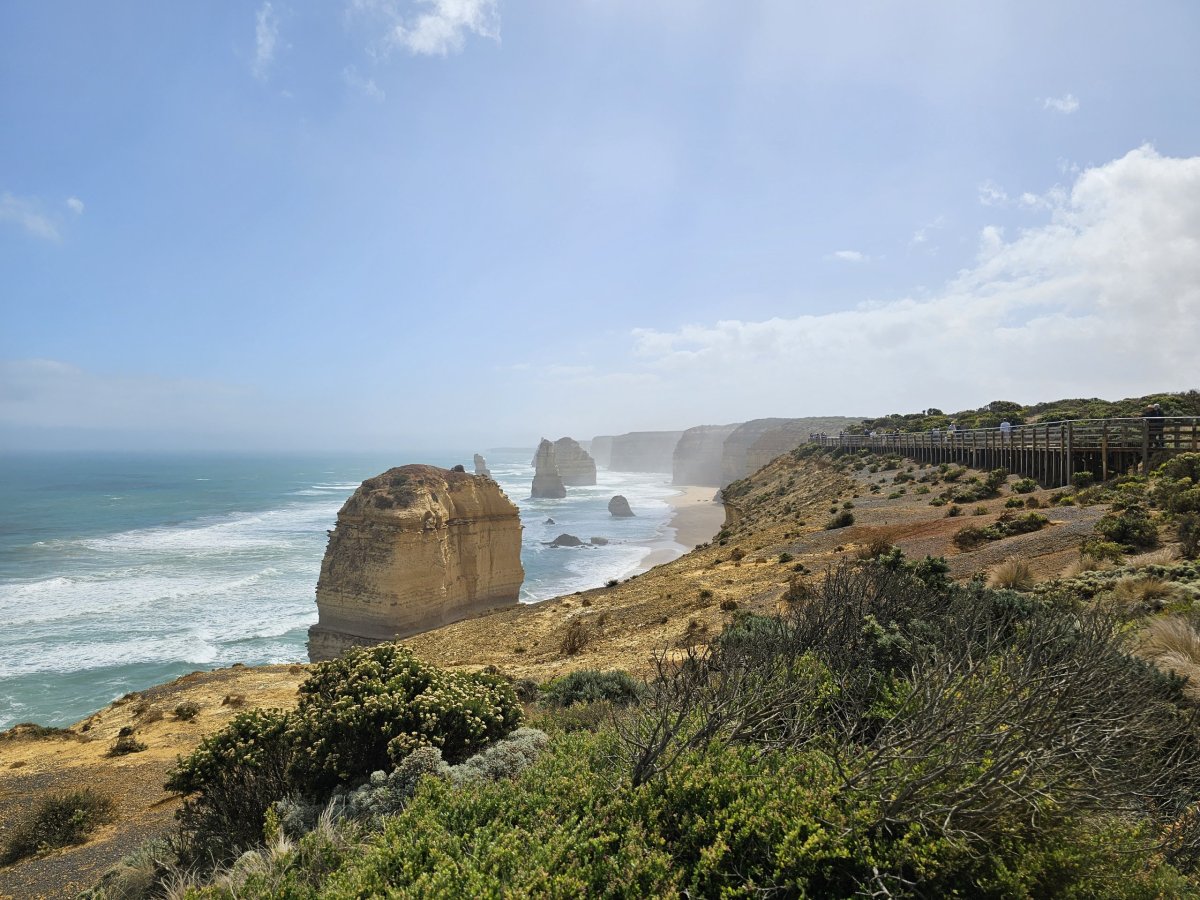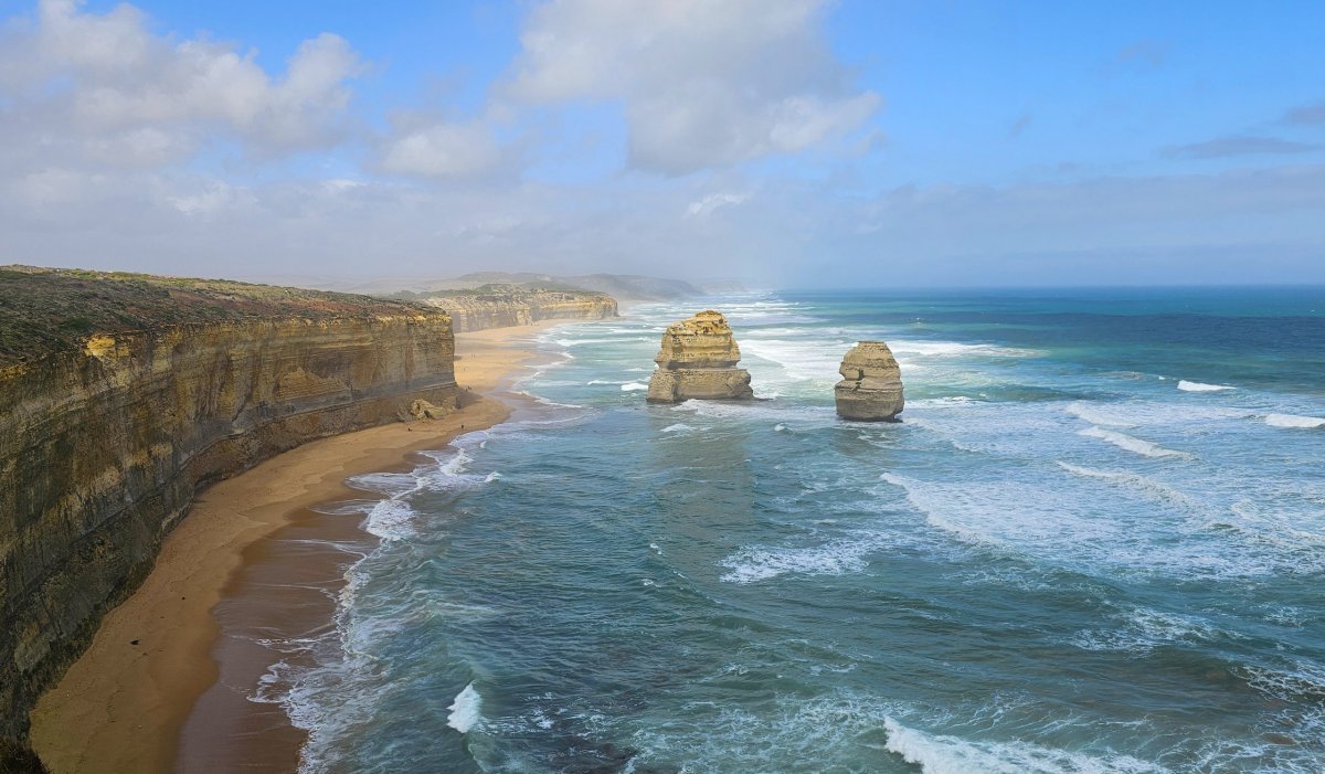 Útesy podél 12, tedy dnes už jen 7, apoštolů nejsou rovné a mají spoustu výčnělků a poloostrovů, z nichž se naskýtají krásné vyhlídky.