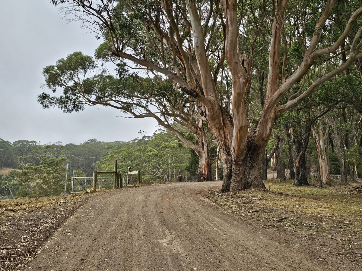 Štěrková cesta odbočuje z hlavní silnice na tomto místě a odbočka je označená směrovkou "Moonlight Head".