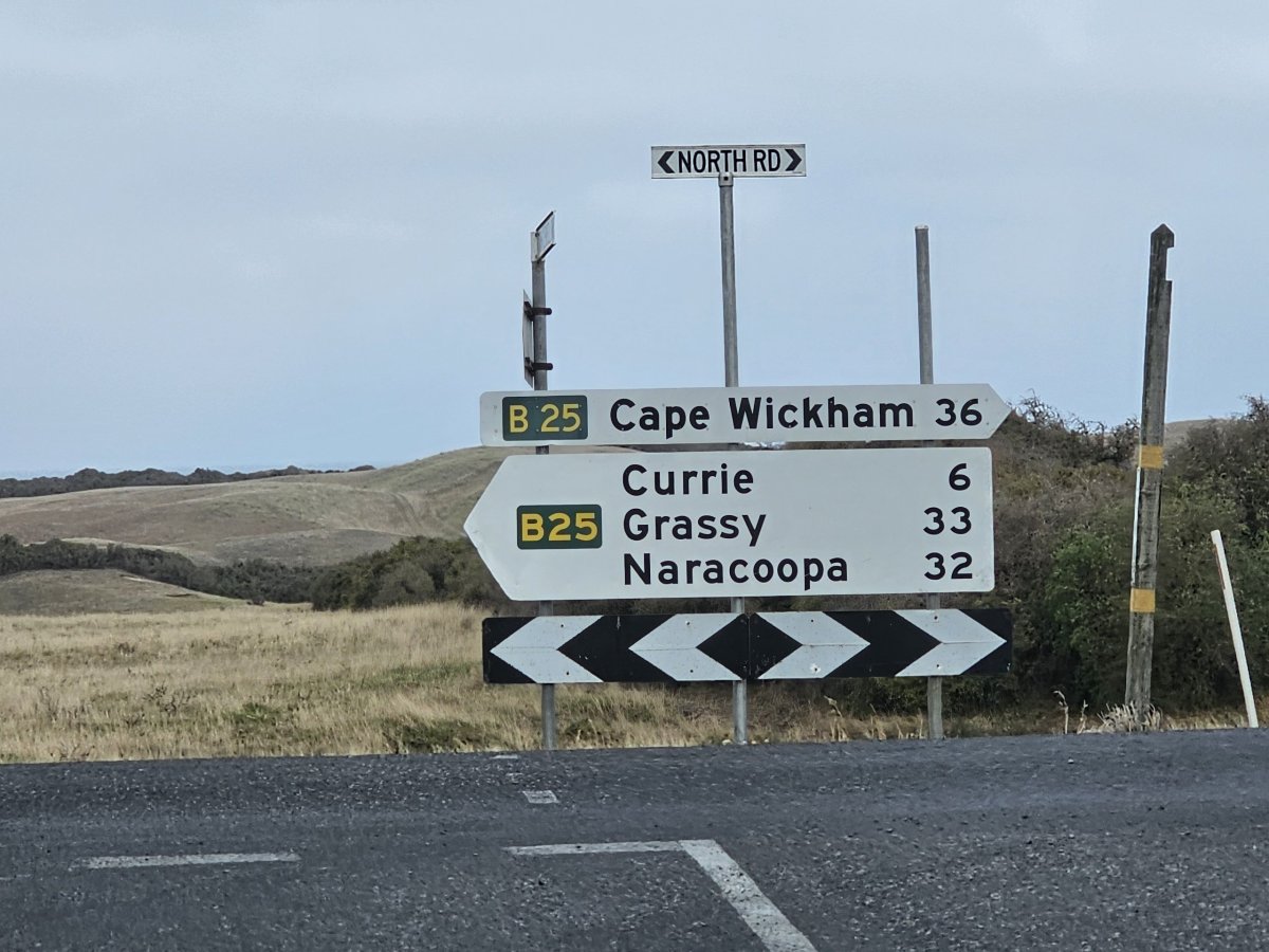 Hlavní silnice na letiště a z Currie k majáku Cape Wickham, do města Grassy a Naracoopa jsou asfaltové a dobře značené.