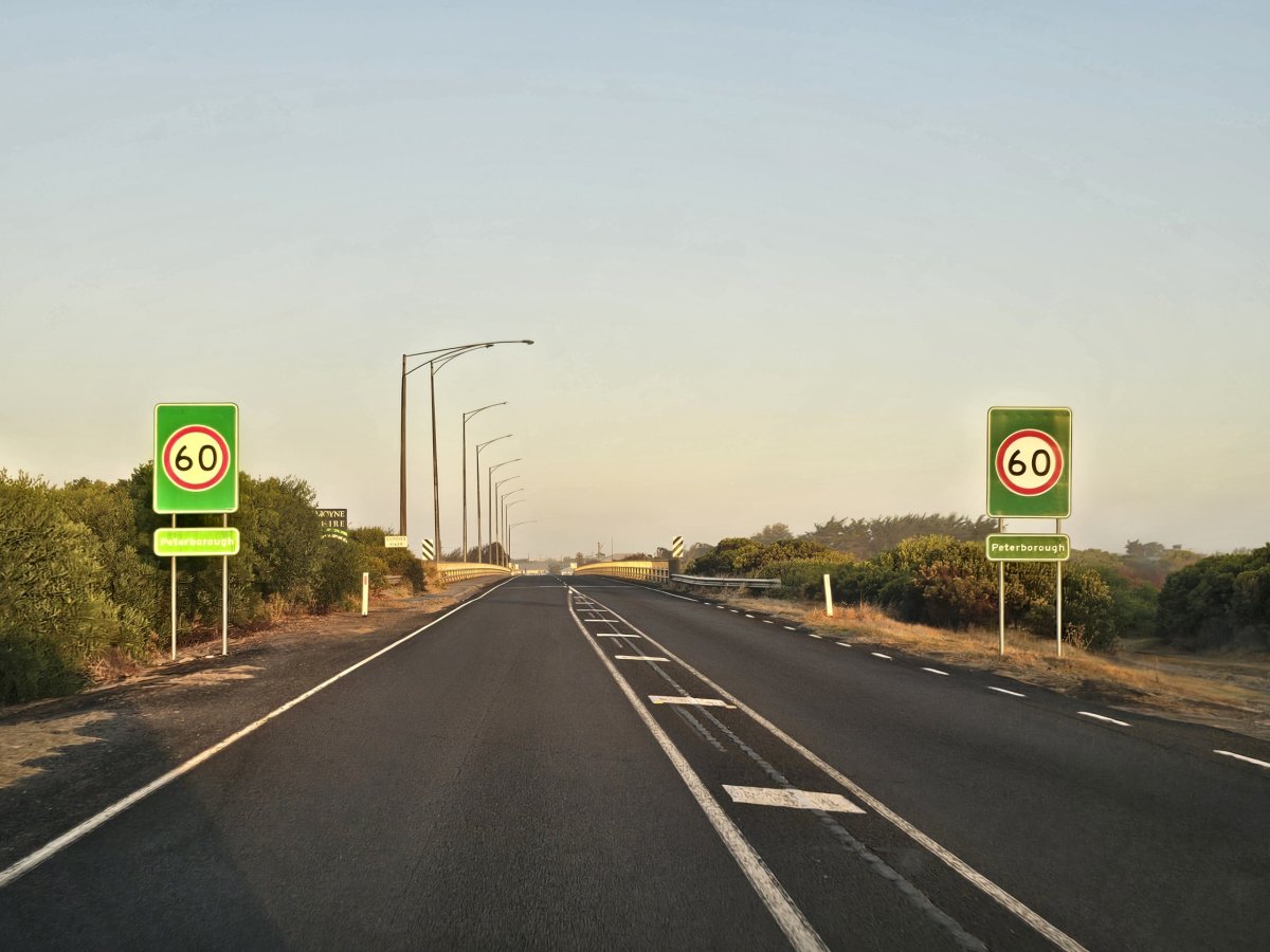 V Austrálii jsou všechny maximální povolené rychlosti vždy stanoveny značkou. Neplatí zde žádné plošné limity.
