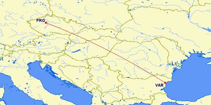 - Vzdálenost po silnici nejkratší cestou z Prahy do Varny: 1 612 km