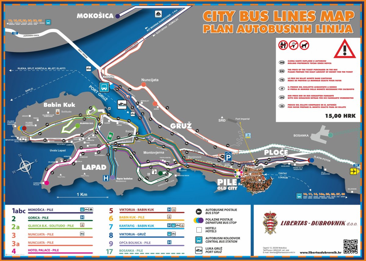 Jízdní řády jednotlivých linek najdete na oficiálním webu libertasdubrovnik.hr. Časy jsou uvedené vždy jen z konečných a stejně tak na zastávkách jsou vyvěšené jen přesně stejné informace jako na webu. Tj. papír se všemi linkami (tedy i těmi, které třeba přes danou zastávku nejezdí) a odjezdy pouze z konečných, což je trochu nepraktické, ale minimálně informaci o intervalu mezi spoji to poskytne.