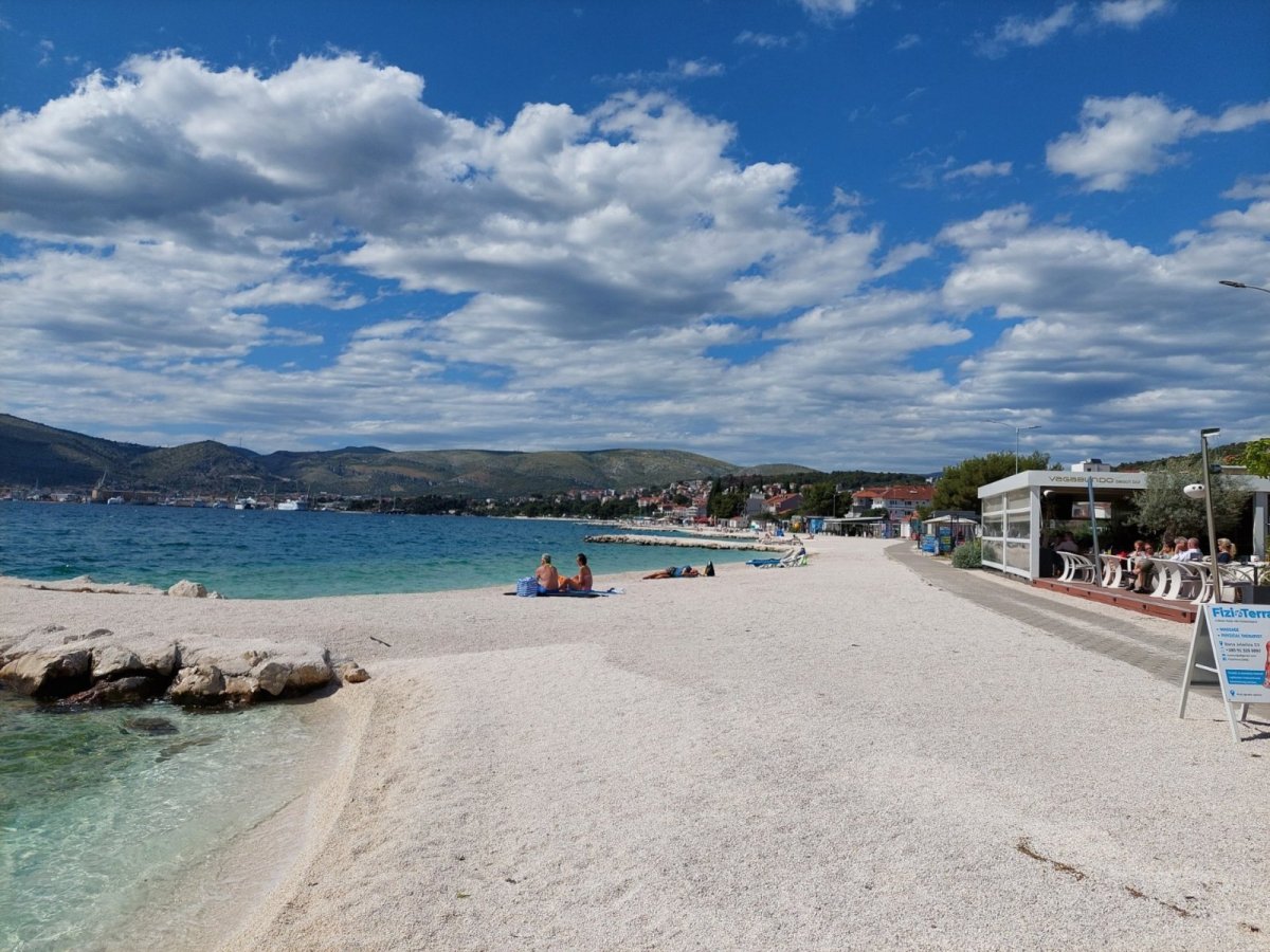 Tato pláž sice neleží v rámci města Trogir, ale je nejbližší možností hezkého koupání a cestou k ní se nejspíš stejně v Trogiru zastavíte, proto ji zařazujeme přímo do tohoto průvodce podobně jako blízkou pláž Rožac.