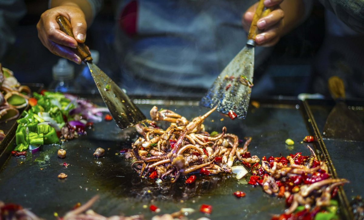 Čínské barbecue – opět se liší dle oblasti, ale základ bývá stejný, kousky masa, různé typy tofu a zeleniny na špejlích, které vám ogrilují. Občas se mezi zeleninou a masem na špejli vyjímá jedna věc, a to je lilek vcelku. Ten rozhodně stojí za ochutnání.