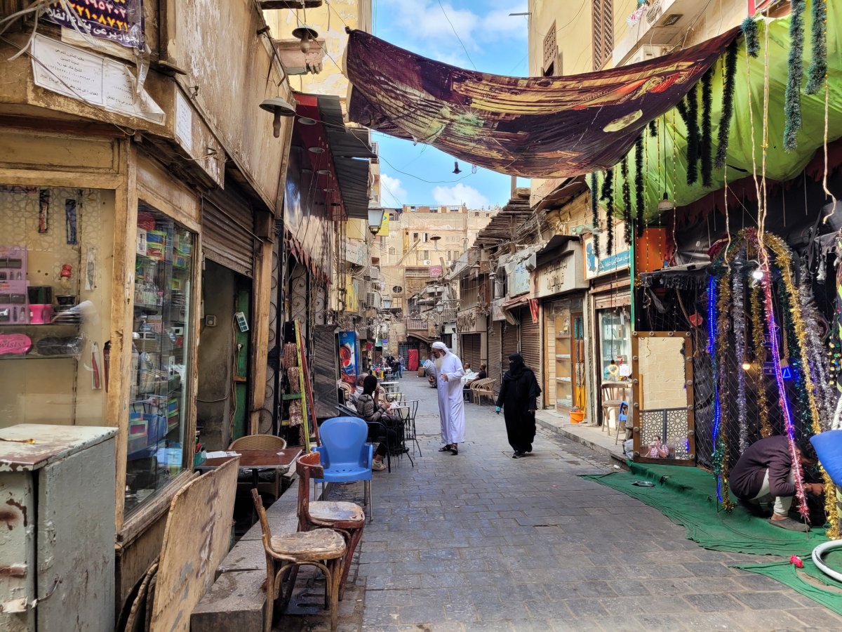Prakticky celá hlavní páteřní ulice táhnoucí se od severu na jih je jedním obrovským souqem, což je jen jiný výraz pro bazar nebo prostě tržiště. Zatímco od mešity Al-Azhar směrem na sever je Islámská Káhira více turistická s mnohými obchody s oblečením a suvenýry, naopak směrem na jih od hlavní mešity je Islámská čtvrť mnohem více autentická.