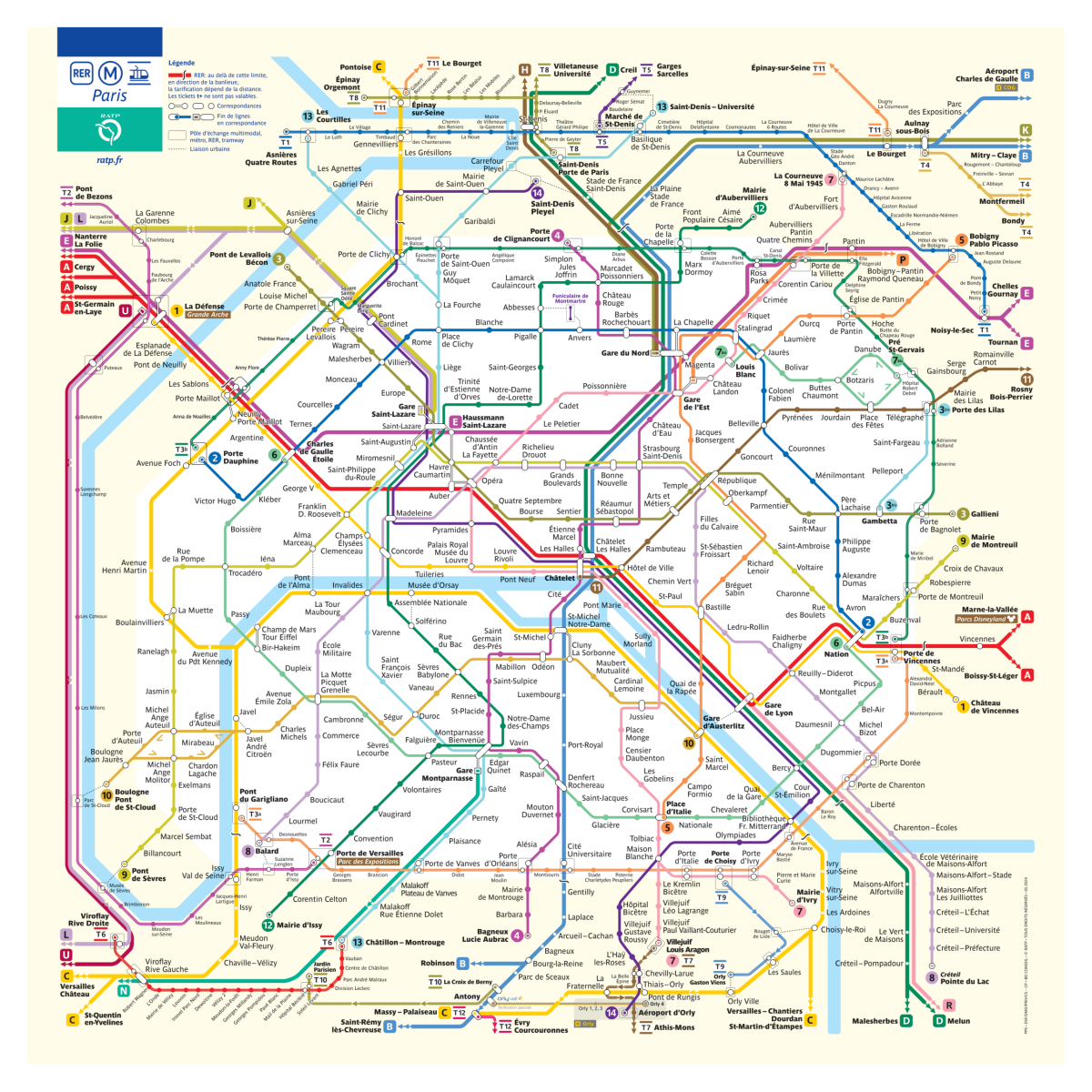 Kompletní plány železniční dopravy v Paříži a okolí (metro, RER, Transilien a tramvaje) najdete na webu: ratp.fr/plan-transilien.