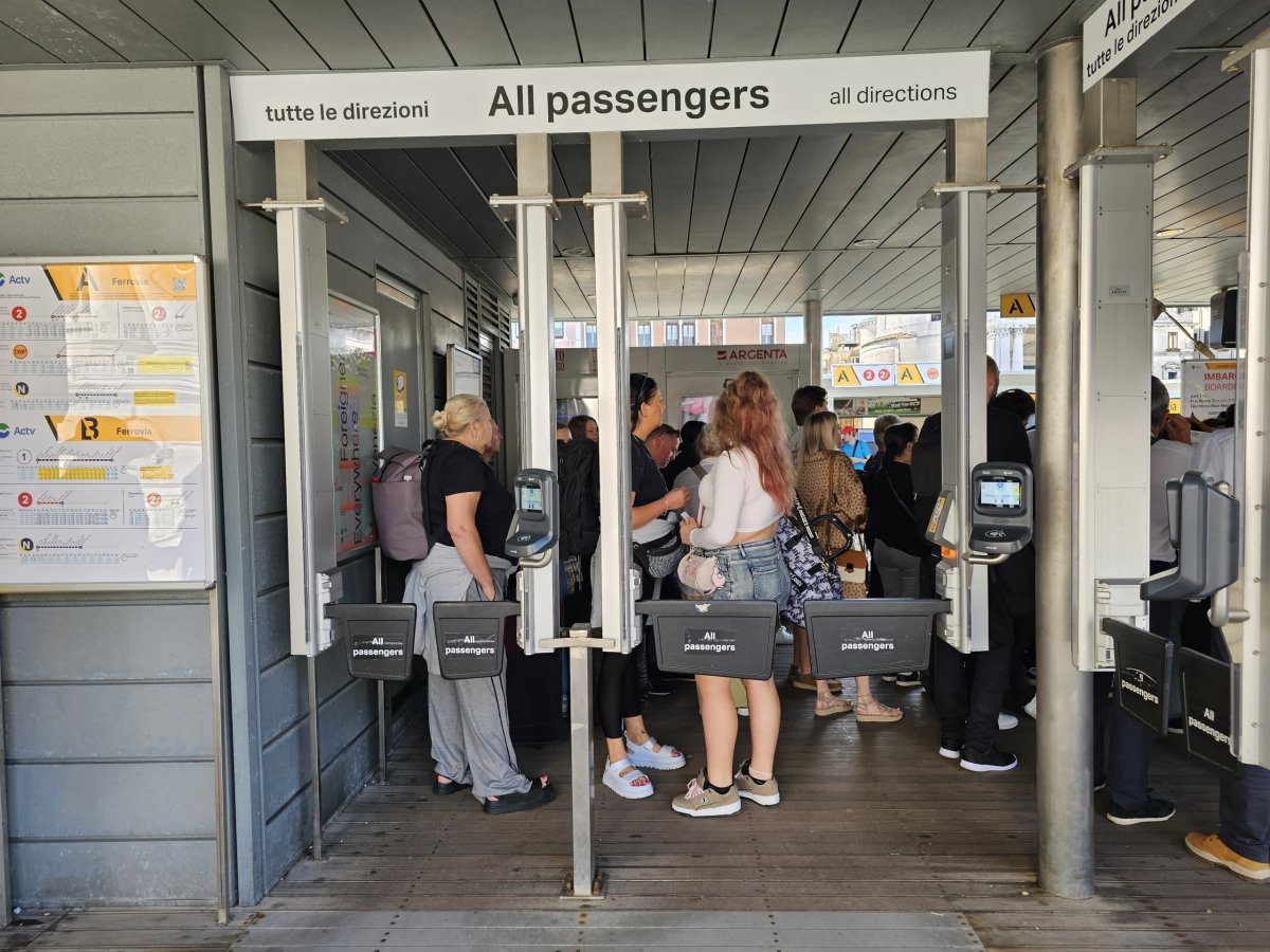 Na některé významné zastávky se vstupuje pouze přes turnikety, kde si vždy musíte načíst jízdenku. Turnikety jsou rozdělené pro držitele běžných jízdenek a držitele Venezia Unica Pass s nahranou jízdenkou s platností více než 1 týden, tedy zejména pro místní.