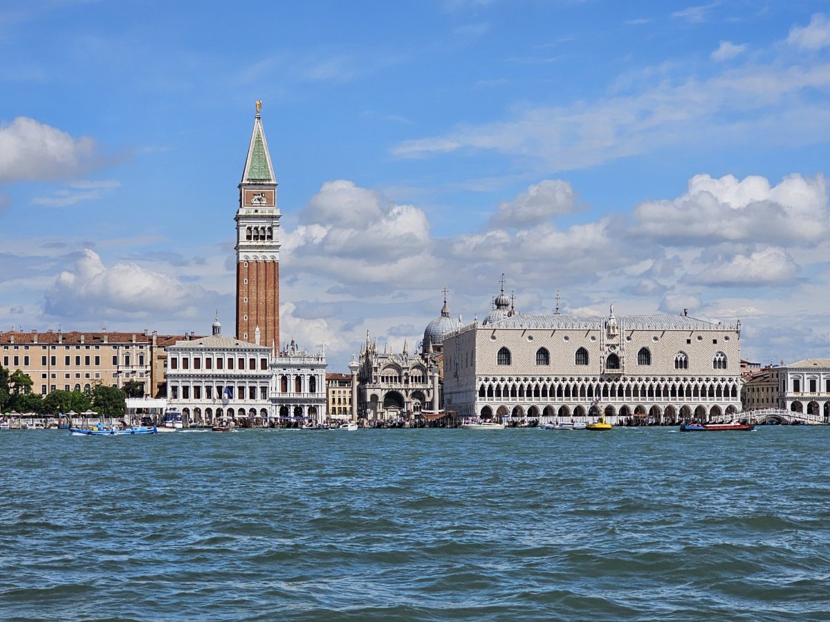 Honosný dóžecí palác (Palazzo Ducale) je dominantní stavbou na nábřeží Canal Grande v těsné blízkosti Baziliky sv. Marka.